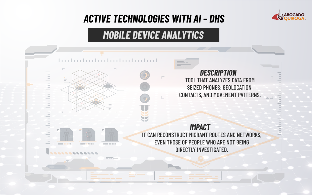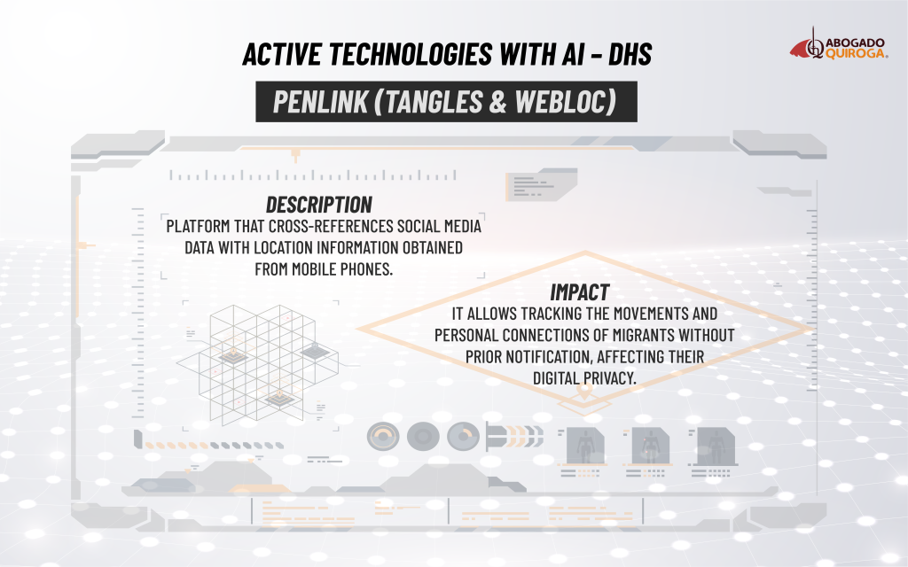 Among the tools already in operation and supporting the operation are: PenLink , capable of linking social media data with geolocation derived from mobile phones; ImmigrationOS , which centralizes biometric and immigration information in real time; and Mobile Device Analytics, which can extract movement patterns from seized devices.