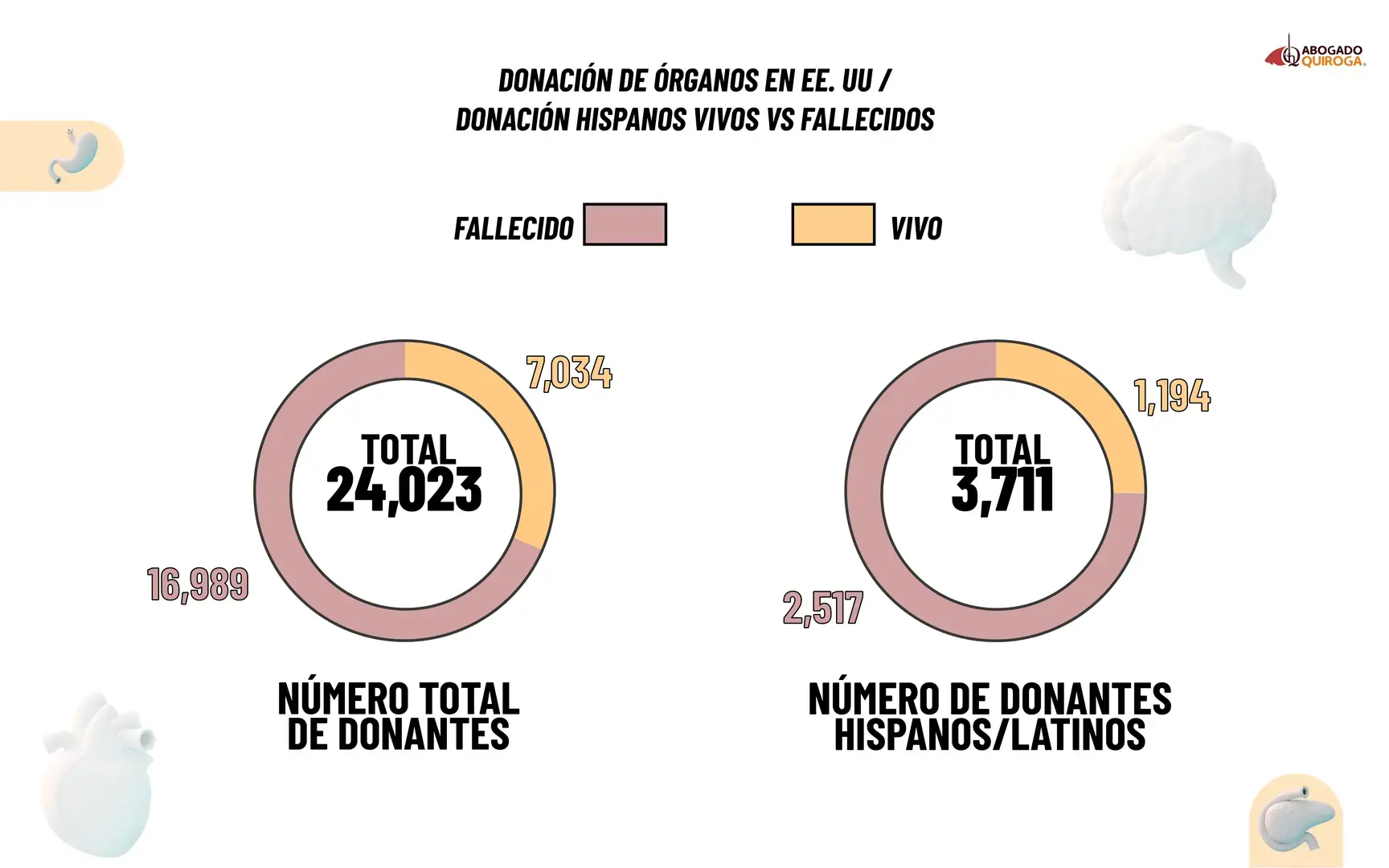 Según la información revelada en dicho informe, de ese total, unos 1,194 fueron donantes vivos hispanos (17 %) y 2,517 fueron entregados por fallecidos hispanos (15 %). Estos números incluyen a ciudadanos y no ciudadanos, pero no distinguen específicamente por estatus migratorio.