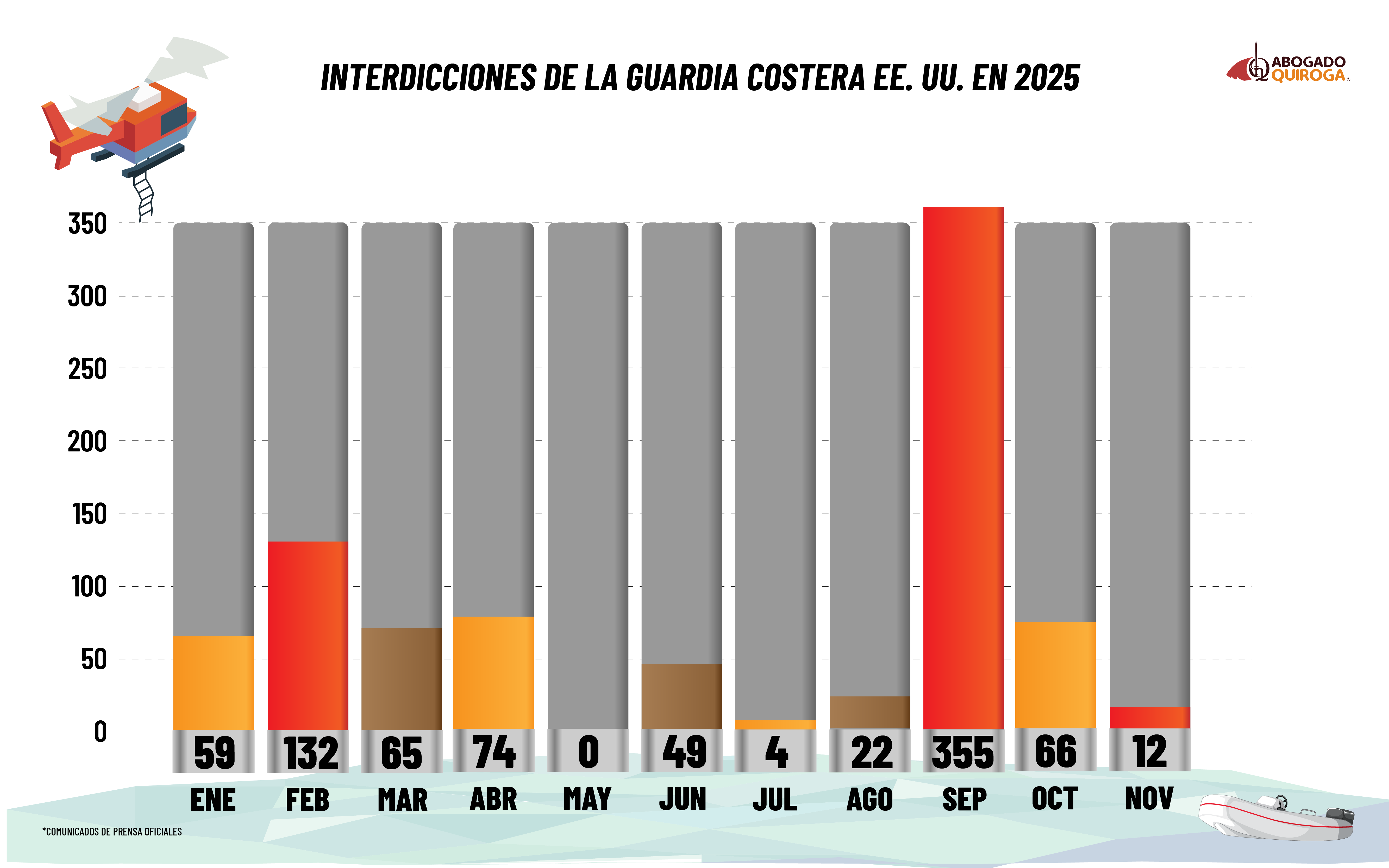 El comportamiento de interdicción, repatriación o captura de migrantes reportados en comunicados de prensa por la Guardia Costera de Estados Unidos durante 2025 en su página, nos muestra un comportamiento irregular, con meses de actividad moderada o baja, contrastando con picos de gran magnitud.