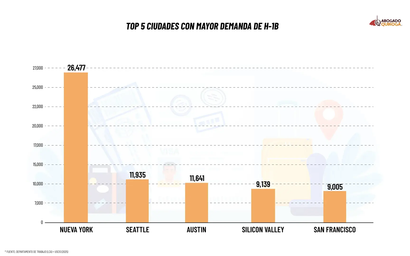 * Fuente: Departamento de Trabajo (LCA) + USCIS (2025)