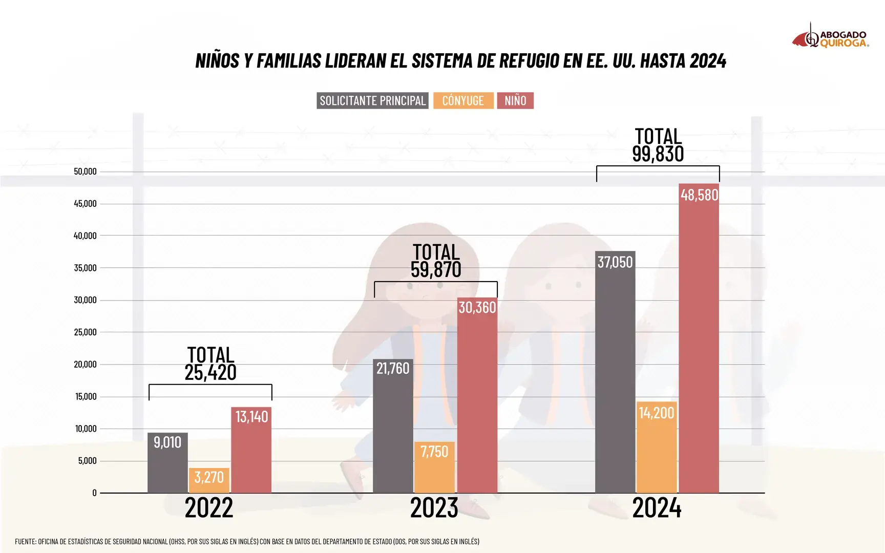 Según la Oficina de Estadísticas de Seguridad Nacional (OHSS, por sus siglas en inglés) con base en datos del Departamento de Estado (DOS, por sus siglas en inglés), en 2024 la mayoría de las personas admitidas como refugiadas no llegaron solas, sino acompañadas por sus familiares. Los datos lo mostraban claramente: