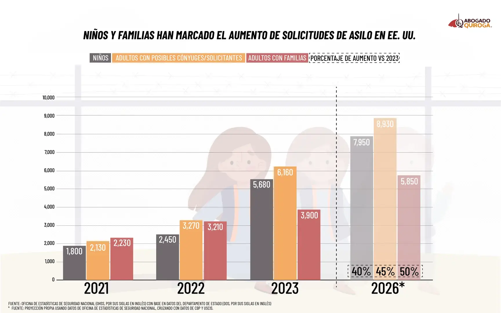 Niños: se estima que casi 8,000 menores hicieron parte de las solicitudes de asilo, lo que representa un aumento del 40 % frente a 2023.