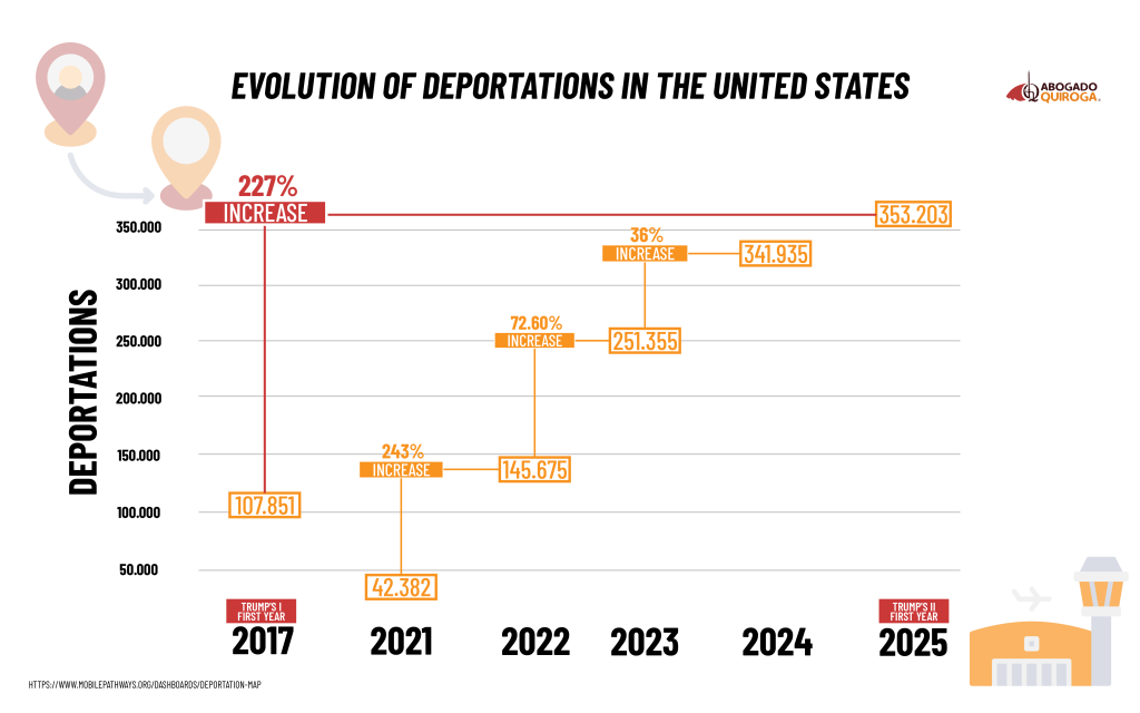 Compared to 2017 (107,851), the first year of the Trump administration, deportations in 2025 represent a 227% increase.
