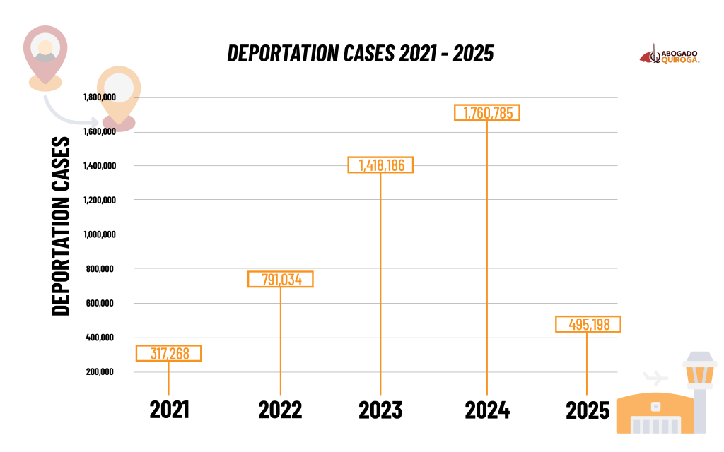 If we compare the last five years, we find that between 2021 and 2022, deportations tripled, marking the largest jump of the period (+243.7%). The growth rate slowed in 2023 (+72.6%) and 2024 (+36%).