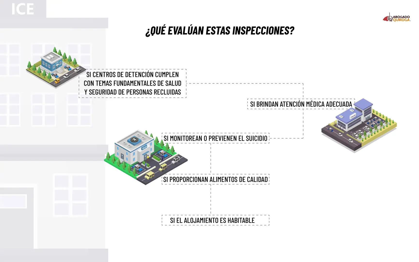 Las inspecciones evalúan si los centros de detención cumplen con temas fundamentales de salud y seguridad de las personas recluidas, entre ellos, si brindan atención médica adecuada, monitorean y previenen el suicidio, proporcionan alimentos de calidad y mantienen un alojamiento habitable.