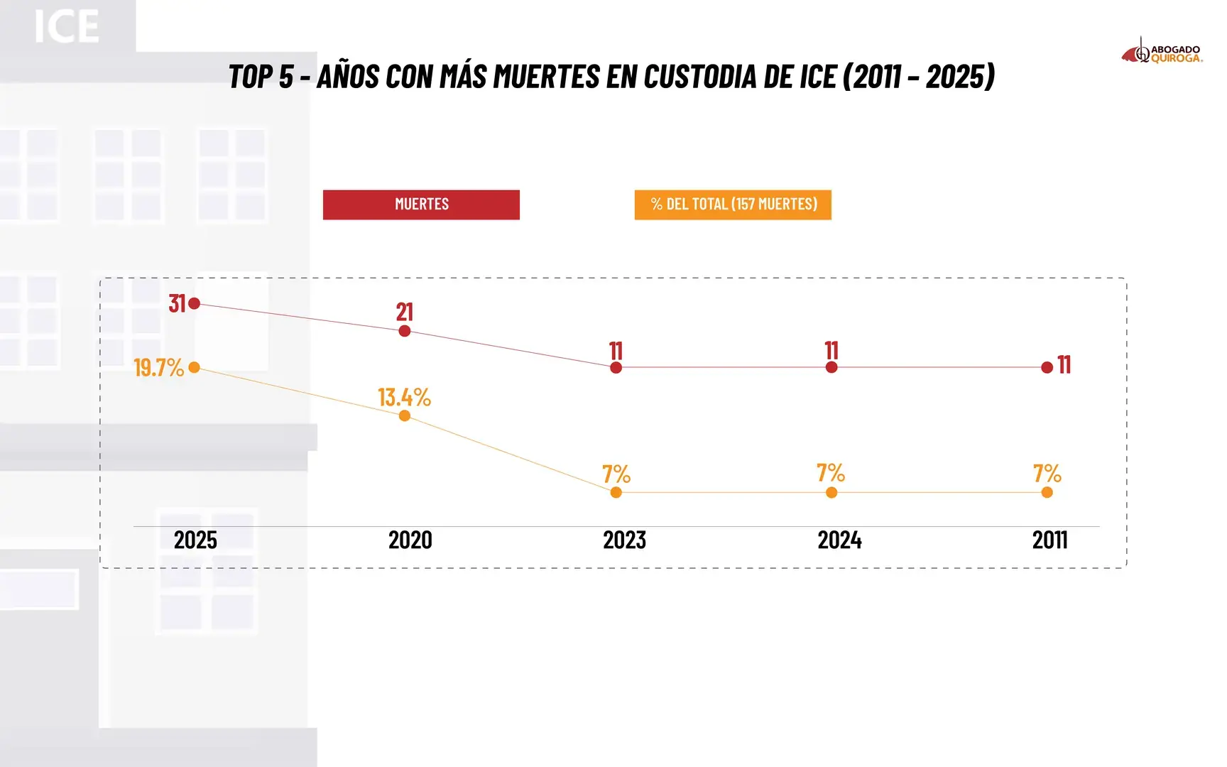 El salto de 11 muertes en 2024 a más de 30 en 2025 implica un aumento cercano al 173 % en solo un año, una de las subidas más abruptas desde que existen registros del sistema de detención migratoria.