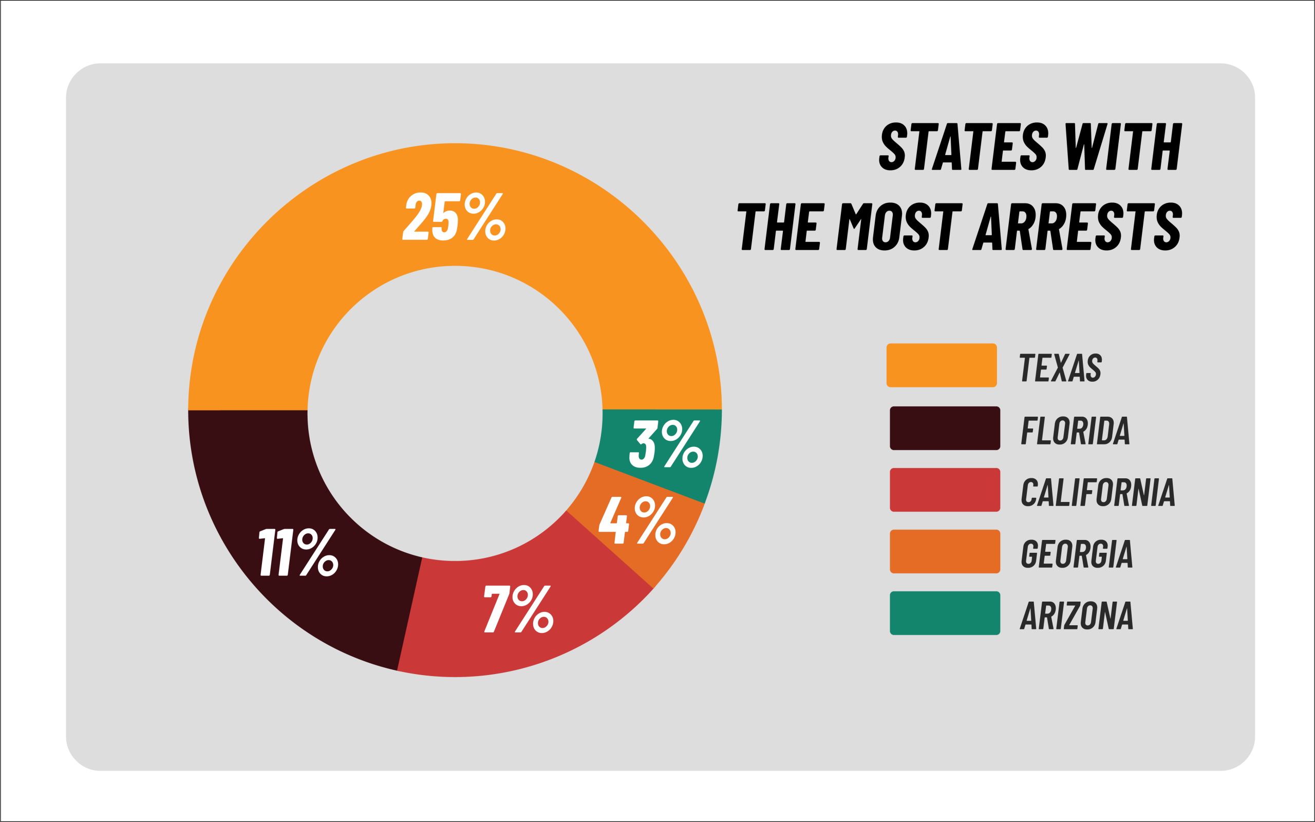 But to begin to contextualize the issue, let us first talk about arrests. According to reports from the organization Deportation Data Project, from January to June the United States Immigration and Customs Enforcement (ICE) has detained more than 109,000 immigrants. (https://deportationdata.org/data/ice.html). The statistics show that Texas topped the list of states with the most arrests with approximately 25%, followed by Florida with 11%, California with 7%, Georgia 4%, and Arizona 3%.
