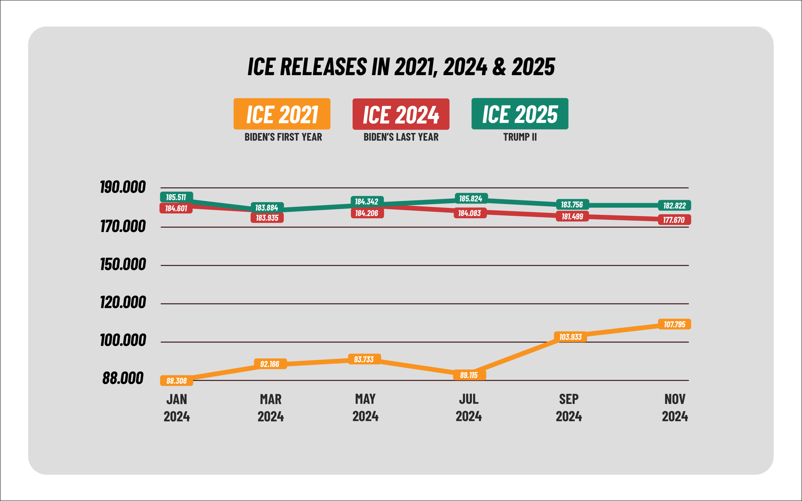 This is shown by figures we learned from both ICE and TRAC Immigration, which allow me to conclude that more people are being released with technological monitoring systems during this government, compared to the same period under Biden, something that is surprising and contradictory.