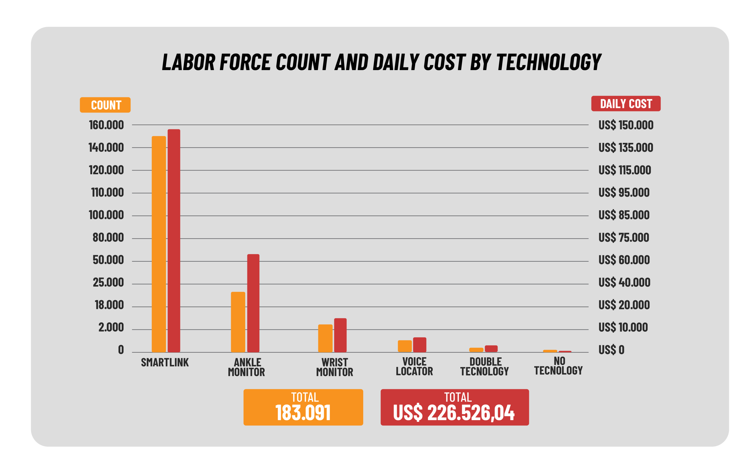 Of these, 155,675 people were under SmartLink, 23,338 with ankle or wrist monitors, and 2,861 respectively, and 1,204 with voice identification. The average duration in the program is close to 700 days, that is, almost two years.