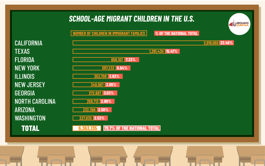 In this demographic context and according to the most recent Kaiser Family Foundation (KFF) Education and Health Survey, approximately 5.5 million school-age children belong to immigrant families, reflecting the growing weight of this population in American classrooms.